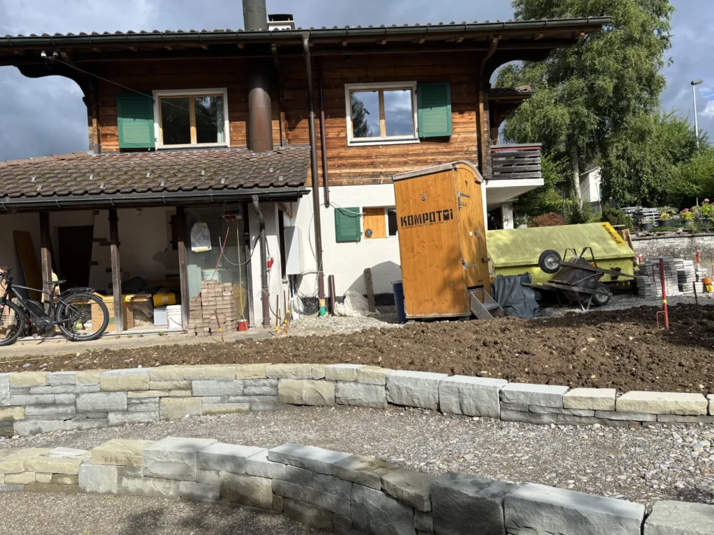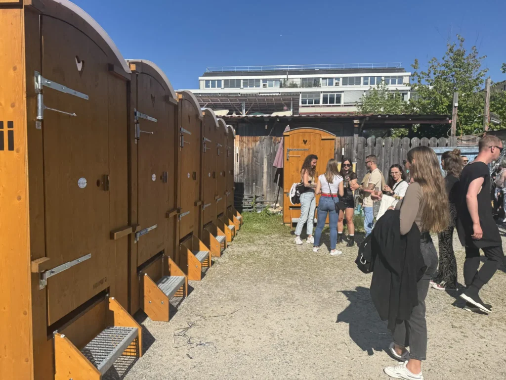Unsere Holztoiletten prägen das Baustellenbild – kein Plastik, kein Wasser, keine Chemie. Ein starkes Zeichen für Umweltbewusstsein und Qualität.