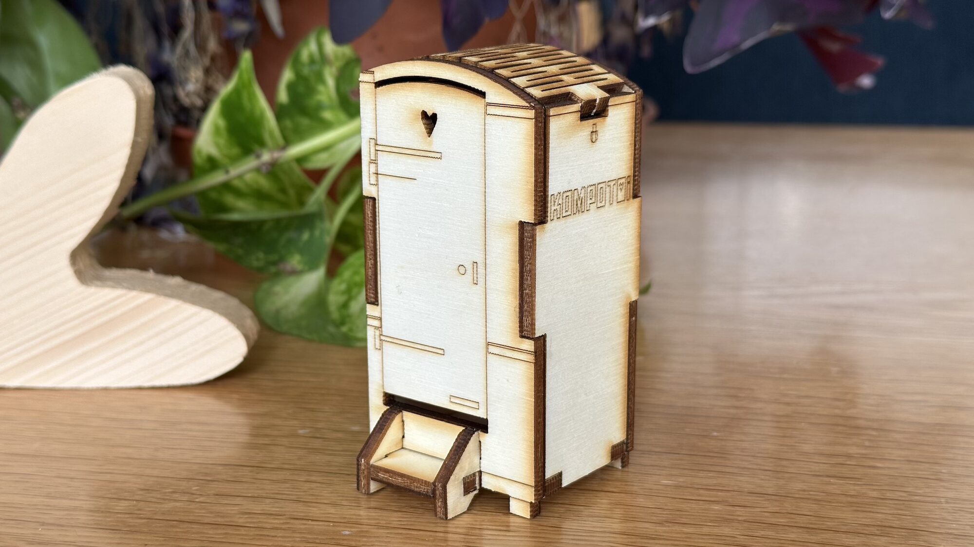 Das Original als Mini-Me: Dieser Kompotoi Bausatz ist die detailgetreue, kleine Version der beliebten Kompotoi Komposttoilette – zum Selberbauen, Schmunzeln und Verschenken.
